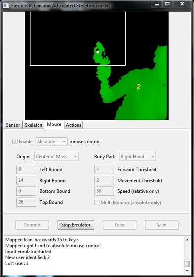 - FAAST 0.9 – Software used to map Kinect gestures to the keyboard.